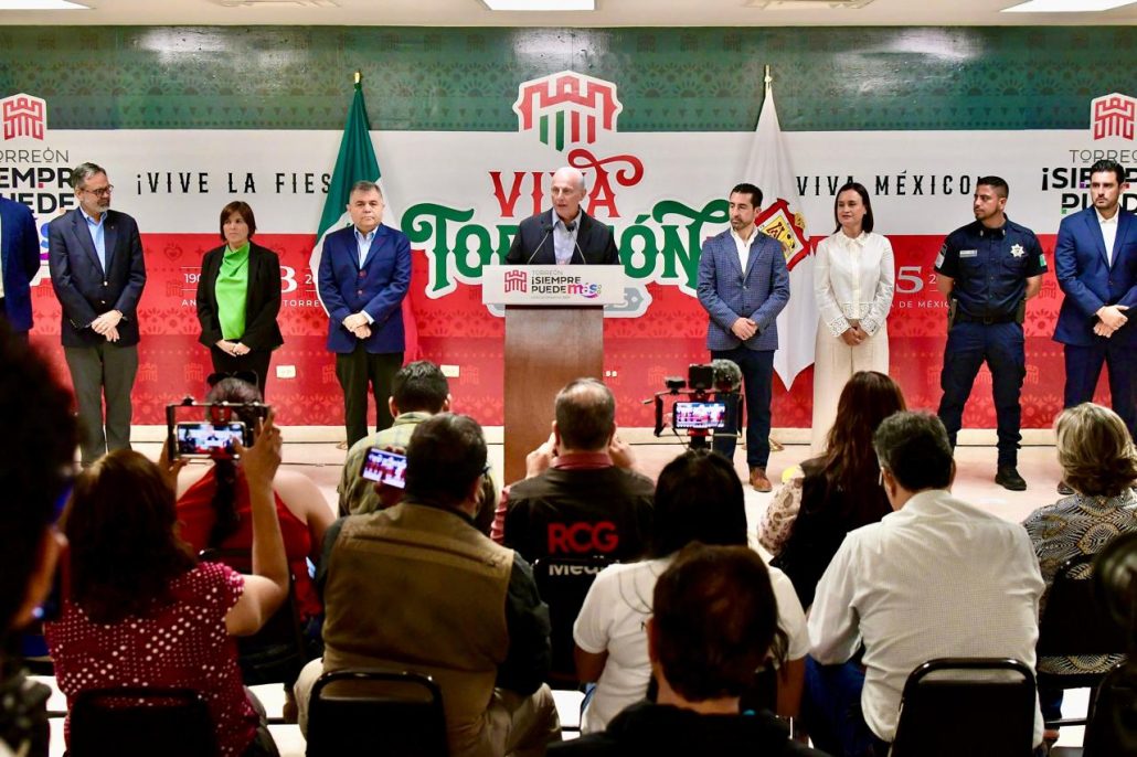 El Alcalde resaltó la coordinación con las diferentes corporaciones policiacas para garantizar el orden y la paz social en los festejos patrios de la Independencia de México y el 118 aniversario de Torreón como ciudad.