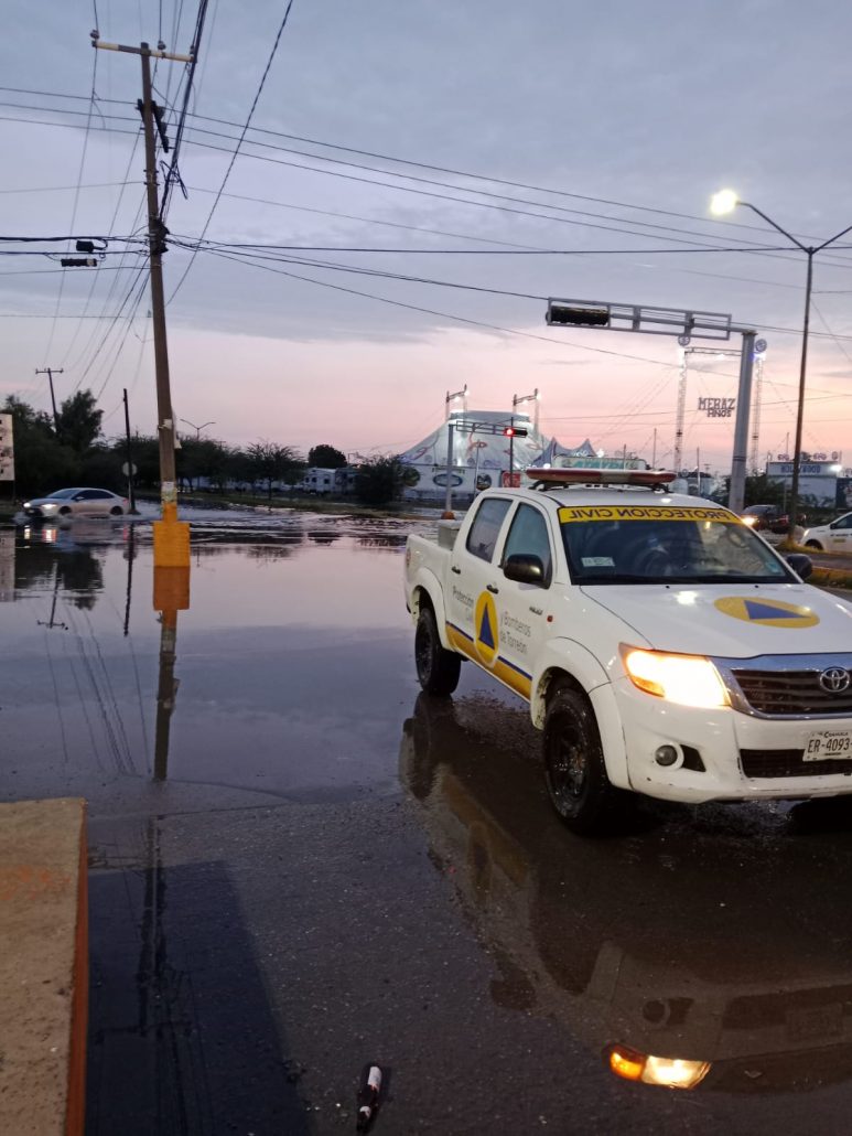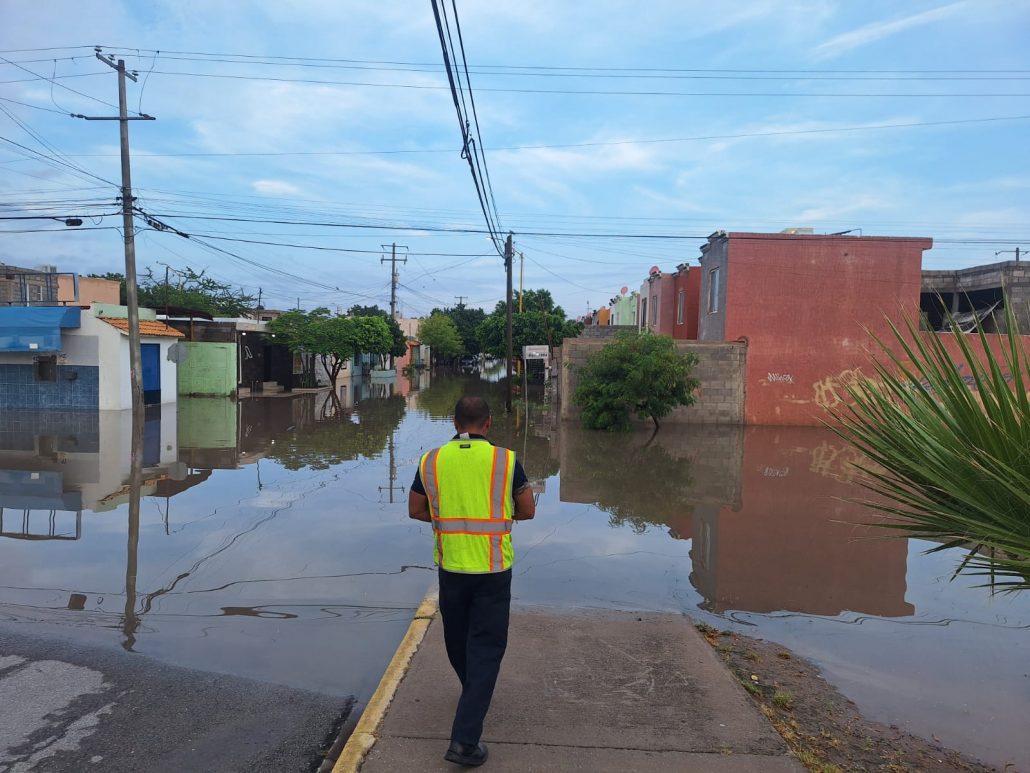 Indicó que, por instrucciones del alcalde Román Alberto Cepeda González, se mantiene la vigilancia permanente de las unidades de Protección Civil, con rondines y operativos de atención, con los cuales se está trabajando en el desagüe de calles afectadas, limpieza de alcantarillas y todas las acciones necesarias para despejar las calles de la acumulación de agua.