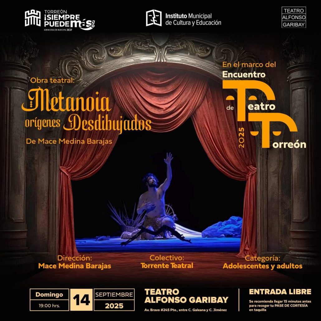 Finalmente, el 14 de septiembre a las 19:00 horas, Torrente Teatral presentará Metanoia: Orígenes desdibujados, una obra que explora la identidad individual a partir de la memoria personal, familiar y social, invitando a reflexionar sobre la influencia de los silencios y el pasado en nuestra vida presente.