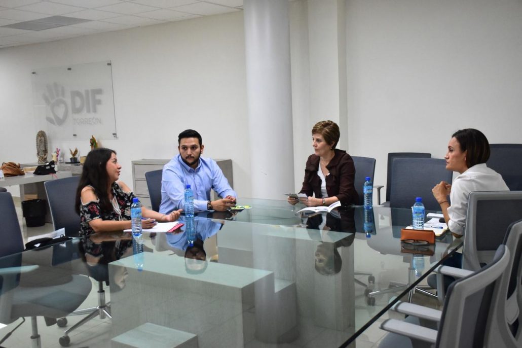 La señora Selina Bremer de Cepeda, presidenta honoraria del Sistema para el Desarrollo Integral de la Familia (DIF) Torreón, y la directora general, Marlene Martínez Valdez, recibieron en las instalaciones de Ciudad DIF a personal de asistencia de ciudadanos estadounidenses, del Consulado de Estados Unidos en Monterrey.