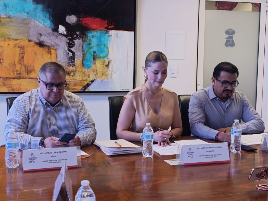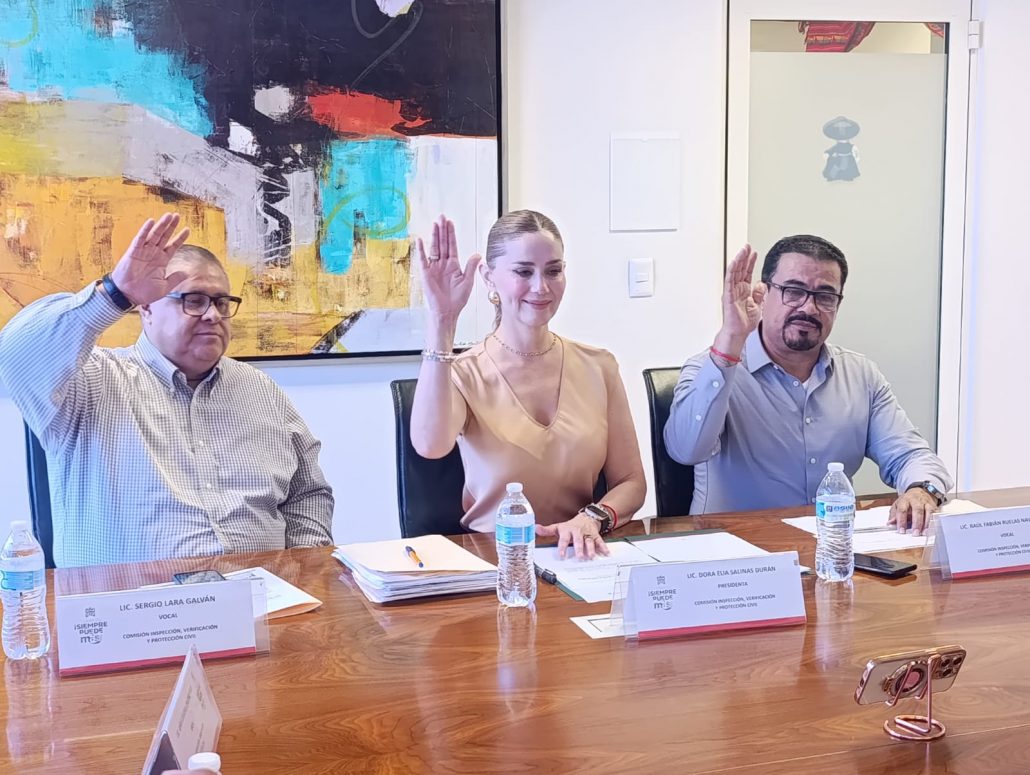 La Comisión de Inspección, Verificación y Protección Civil es presidida por la regidora Dora Elia Salinas Durán y está integrada por los ediles María Fernanda González Aponte, Karla Liliana Centeno Félix, Raúl Fabián Ruelas Navarro y Sergio Lara Galván.