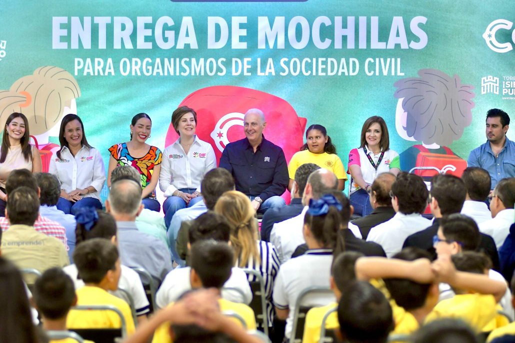 La mañana de este viernes, en las instalaciones de Ciudad DIF, el edil acompañado de la señora Selina Bremer de Cepeda, presidenta honoraria de este organismo, entregó las mochilas a asociaciones civiles que fungen como escuelas y albergues donde los niños y niñas estudian, para otorgarles herramientas para fortalecer su educación.