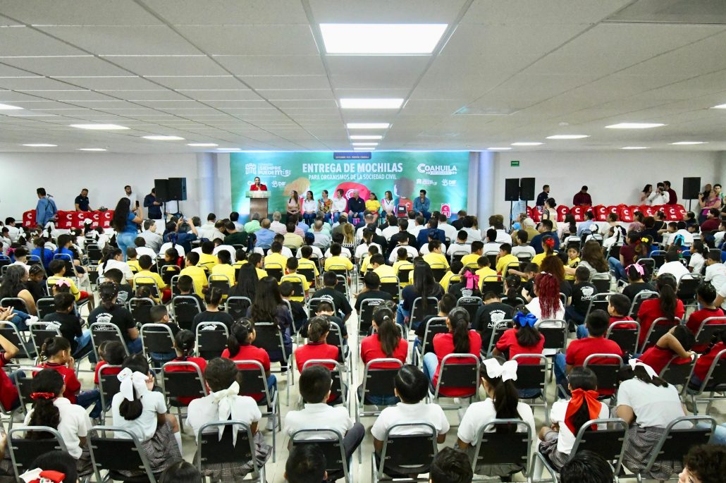 El alcalde Román Alberto Cepeda González entregó mil 500 mochilas a niñas y niños representantes de 13 organizaciones de la sociedad civil (OSC´S), como parte del programa de apoyo escolar coordinado con el gobernador Manolo Jiménez Salinas, dirigido a alumnos de educación básica.
