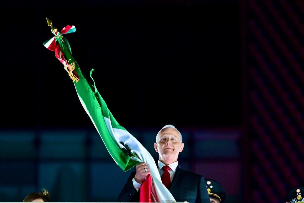Posteriormente, el Alcalde tocó la campana y ondeó la Bandera Nacional, para luego entonar respetuosamente el Himno Nacional Mexicano, junto con las autoridades civiles y militares.