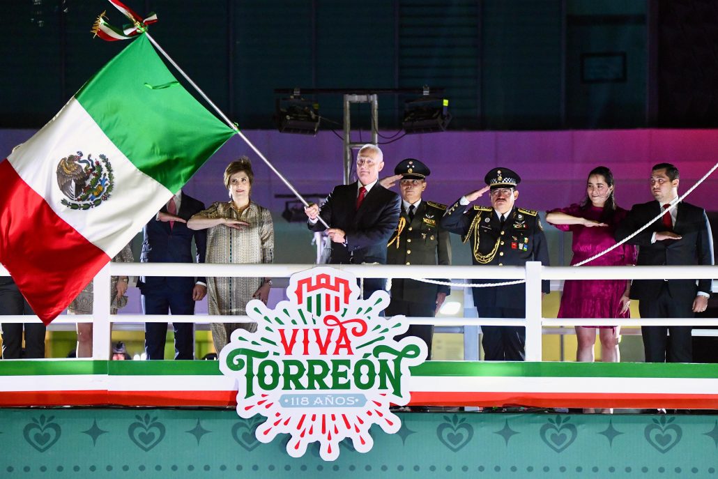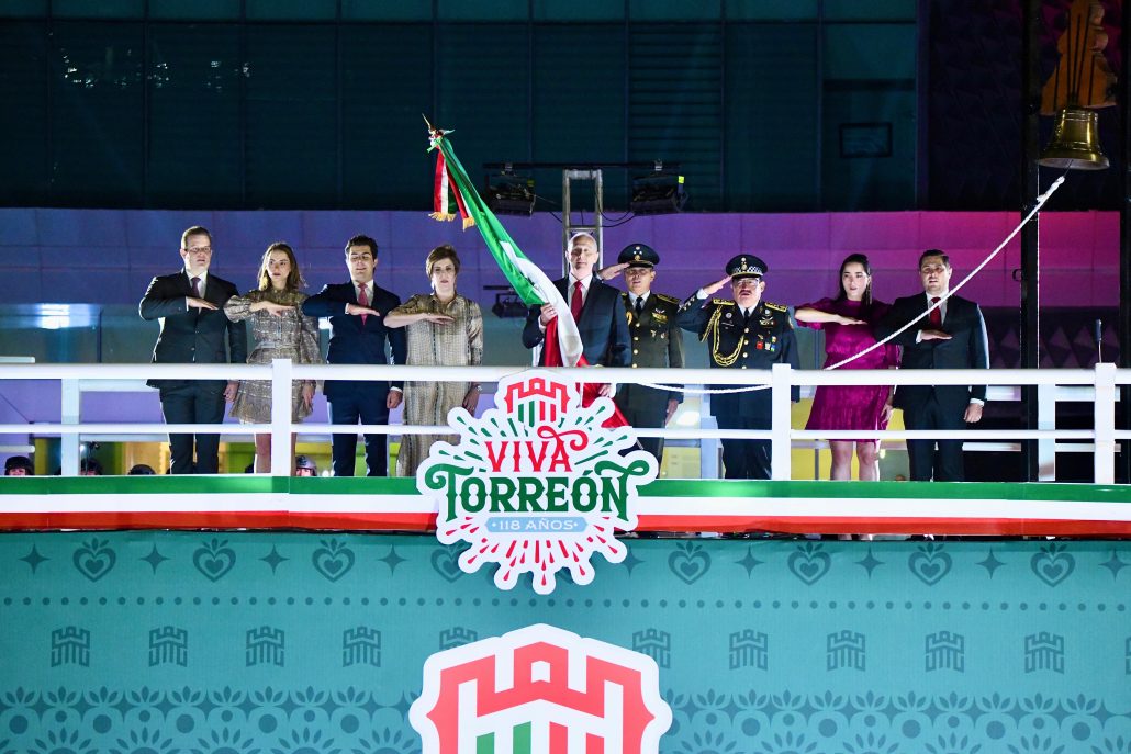 En la conmemoración del Grito de Independencia, el alcalde Román Alberto Cepeda González estuvo acompañado por su esposa, la Señora Selina Bremer de Cepeda, presidenta honoraria del Sistema para el Desarrollo Integral de la Familia (DIF) Torreón, y sus hijos, así como del General de Brigada Gaudencio García Rodríguez, Jefe del Estado Mayor de la Onceava Región Militar, y el general de brigada, diplomado de Estado Mayor, José Luis Sedano Ramírez, coordinador regional noroeste de la Guardia Nacional.