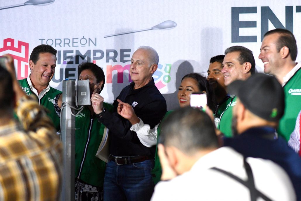 “Seguiremos trabajando porque Torreón siga siendo una de las ciudades más seguras, más iluminadas, la ciudad mejor pavimentada, de mejor infraestructura, más empleo, la de mayor atracción de inversiones, con mejores obras como lo hemos hecho hasta el día de hoy. No aflojemos, este es el equipo que construye, que trabaja, que da resultados, que día a día escucha lo que pasa en cada colonia y en cada ejido”.
