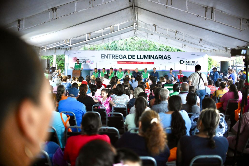 Con una inversión de un millón de pesos, el alcalde Román Alberto Cepeda González y Hugo Dávila Prado, coordinador municipal de Mejora Coahuila, en representación del gobernador Manolo Jiménez Salinas, entregaron la modernización del alumbrado público del ejido La Palma, que comprende la instalación de 183 luminarias nuevas.