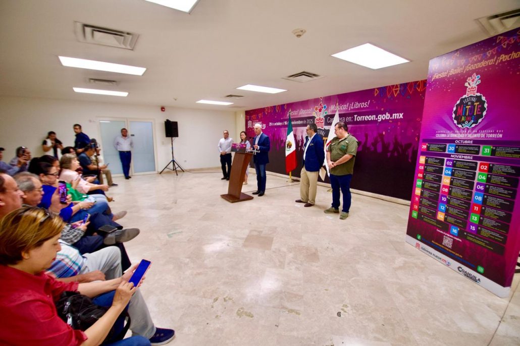 Este martes en rueda de prensa, el alcalde Román Alberto Cepeda González presentó el primer Festival del Mitote Lagunero con una inversión de cuatro millones de pesos; las actividades artísticas y culturales serán del 29 de octubre al 16 de noviembre del 2025 en Torreón.