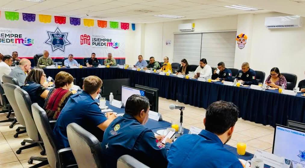 Durante la trigésima octava reunión semanal de seguridad, presidida en representación del alcalde Román Alberto Cepeda González, por el secretario del Ayuntamiento, Eduardo Olmos Castro, se contó con la presencia del coronel de artillería del Estado Mayor, Omar León Arroyo, comandante del Mando Especial de La Laguna, con quien se reforzó la coordinación entre los tres órdenes de Gobierno.