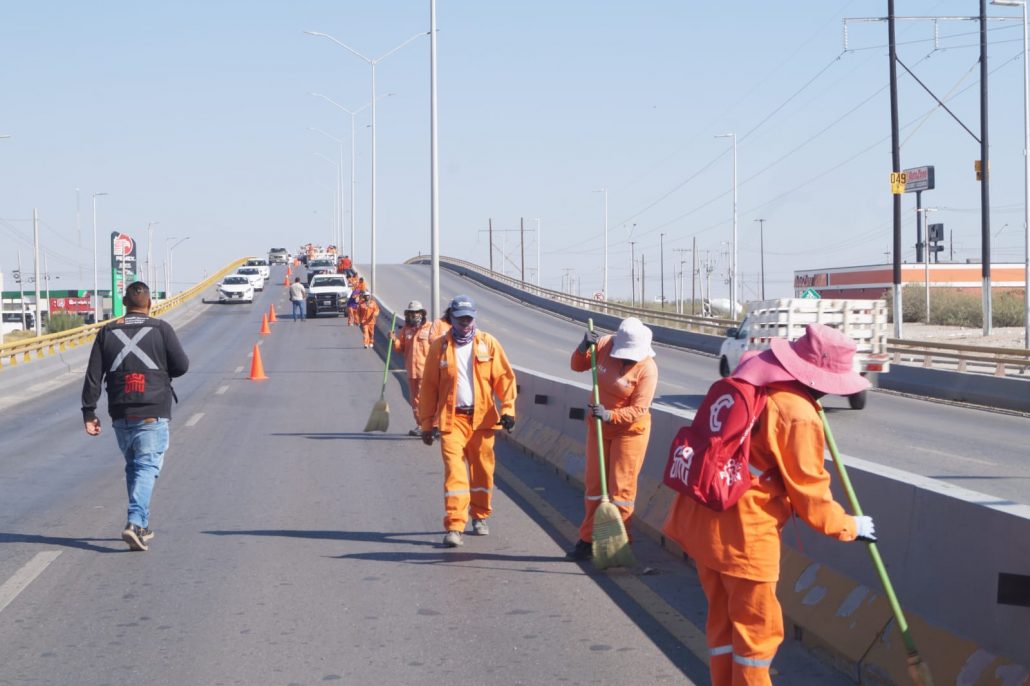 Fernando Villarreal Cuéllar, director de la dependencia, dio a conocer que el equipo de La Ola y Espacios Públicos realizó labores de desmalezado, poda, retiro de basura y montones de tierra, tanto en los espacios mencionados como en puentes completos, por debajo y en sus laterales.