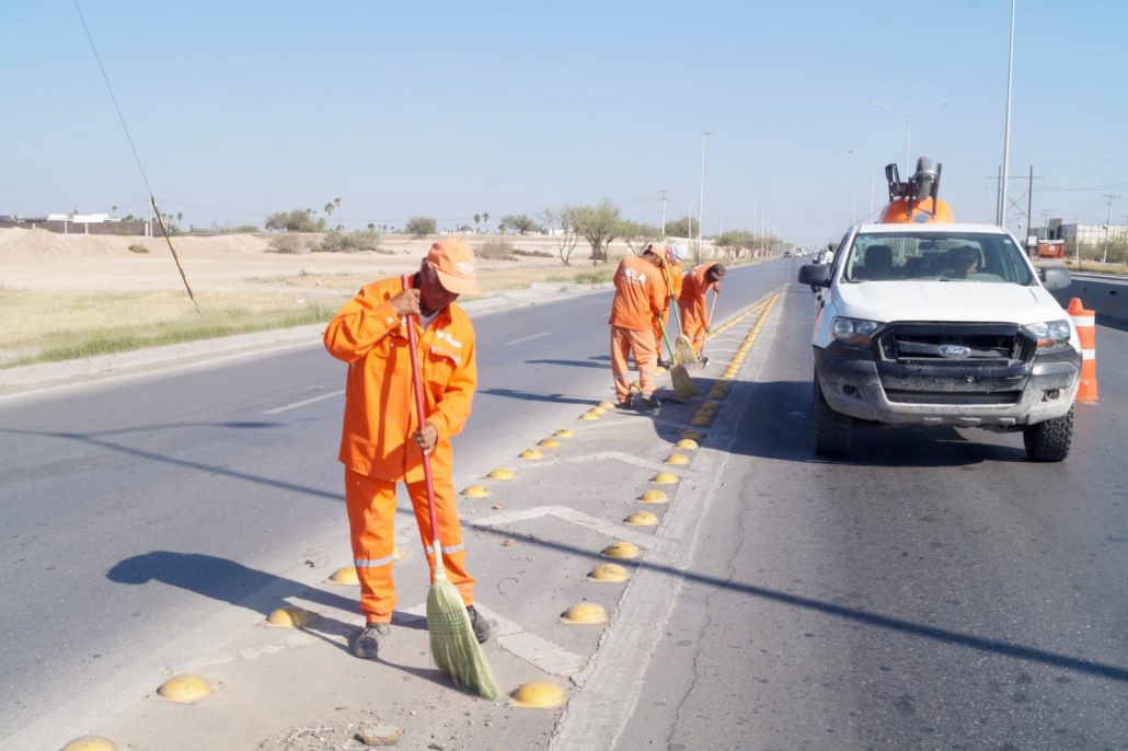 Villarreal Cuéllar agregó que estas acciones se realizan con el objetivo de mantener en óptimas condiciones las principales vialidades de acceso a la ciudad, así como los corredores industriales, donde diariamente transitan trabajadores, transportistas y visitantes.