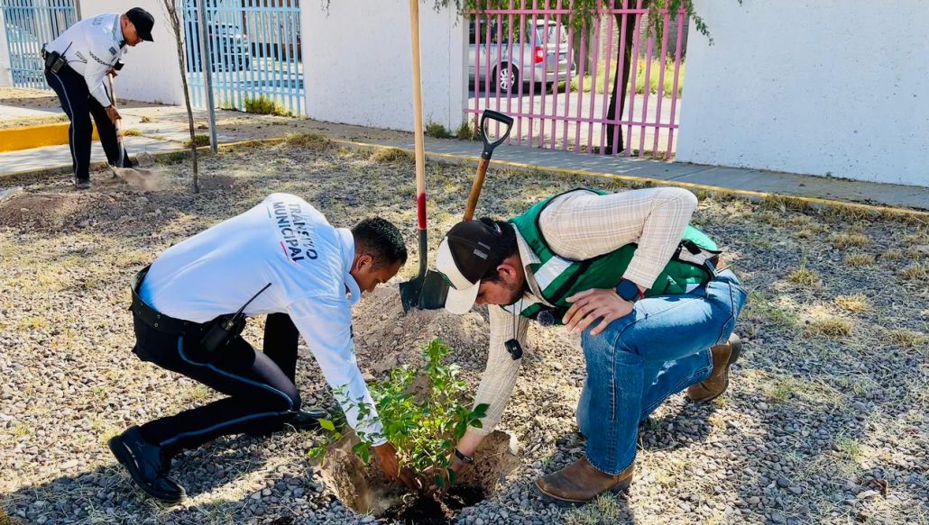 La funcionaria destacó que fueron colocados 23 árboles nativos de la región, entre ellos huizaches y lágrimas de San Pedro, además de siete arbustos de ornato que contribuirán a mejorar la imagen del lugar y a generar sombra en el área.