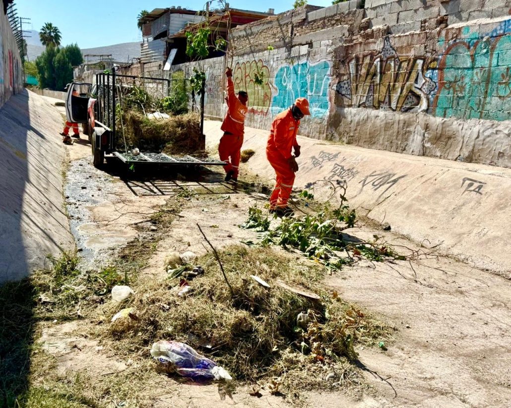 El titular de la dependencia, Fernando Villarreal Cuéllar, informó que iniciaron el pasado lunes y concluirán este miércoles, con trabajos que incluyeron deshierbe, poda, y retiro de basura y escombros acumulados tanto en el interior del canal como en sus laterales.