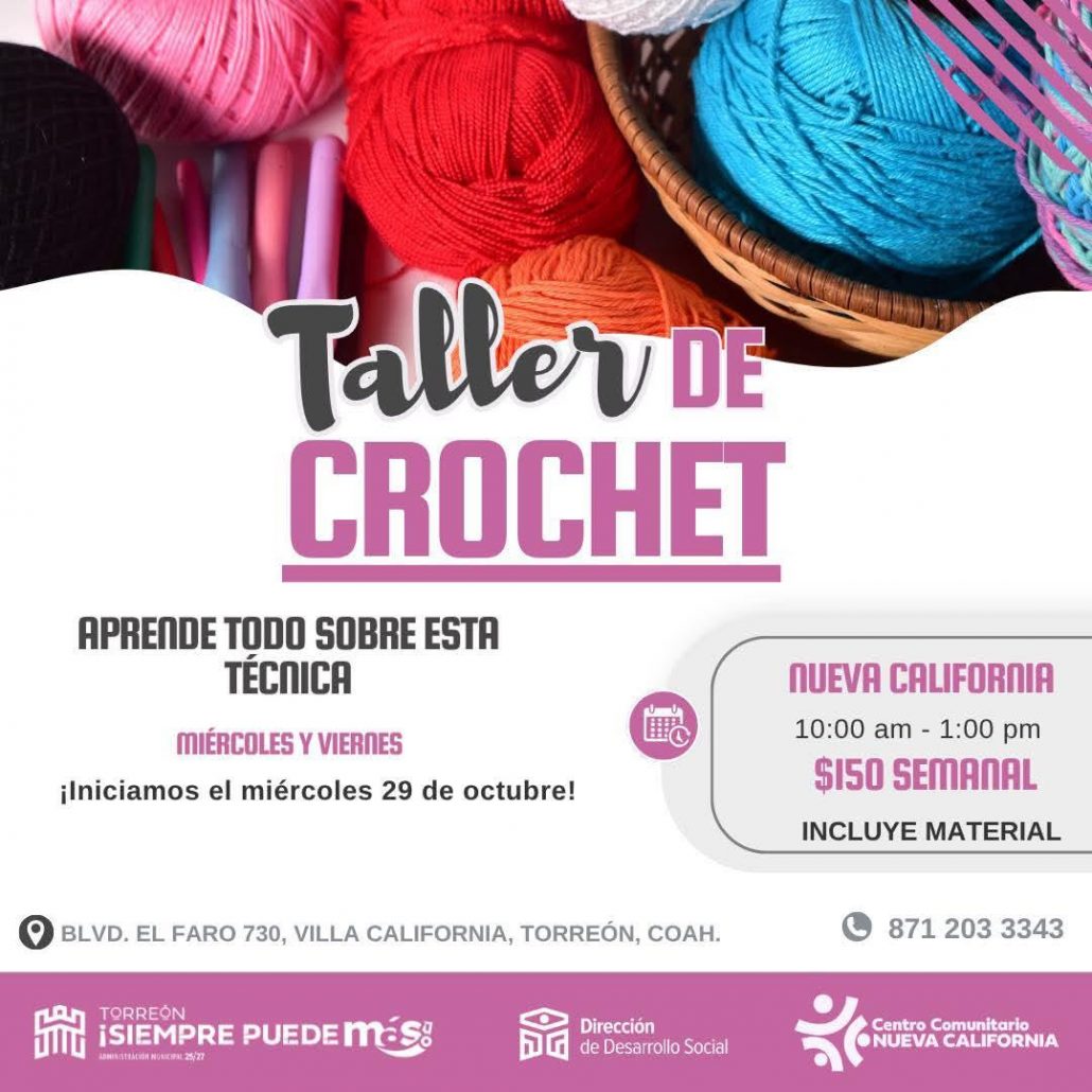 La Dirección de Desarrollo Social invita a la ciudadanía a formar parte del taller de crochet que se llevará a cabo en el Centro Comunitario Nueva California. Esta actividad tiene el propósito de fomentar la creatividad y el aprendizaje de nuevas habilidades, además de ofrecer un espacio para la convivencia entre vecinos del sector y aledaños.