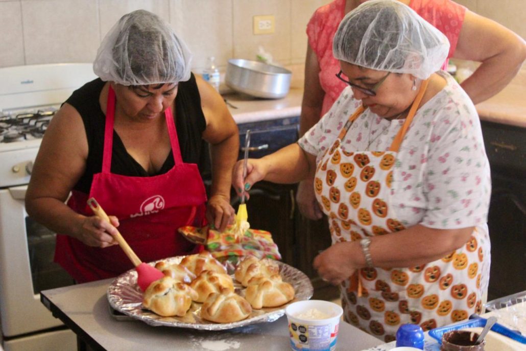 Durante los talleres las participantes aprendieron desde la preparación de la masa hasta el decorado tradicional del pan de muerto, además de compartir un espacio de convivencia y creatividad.