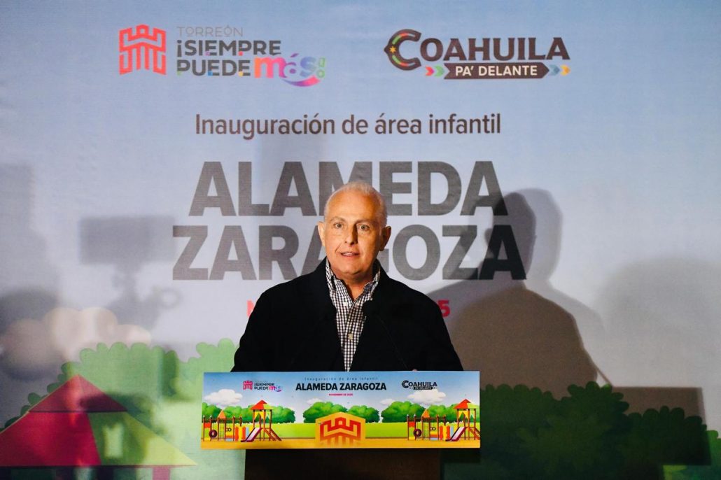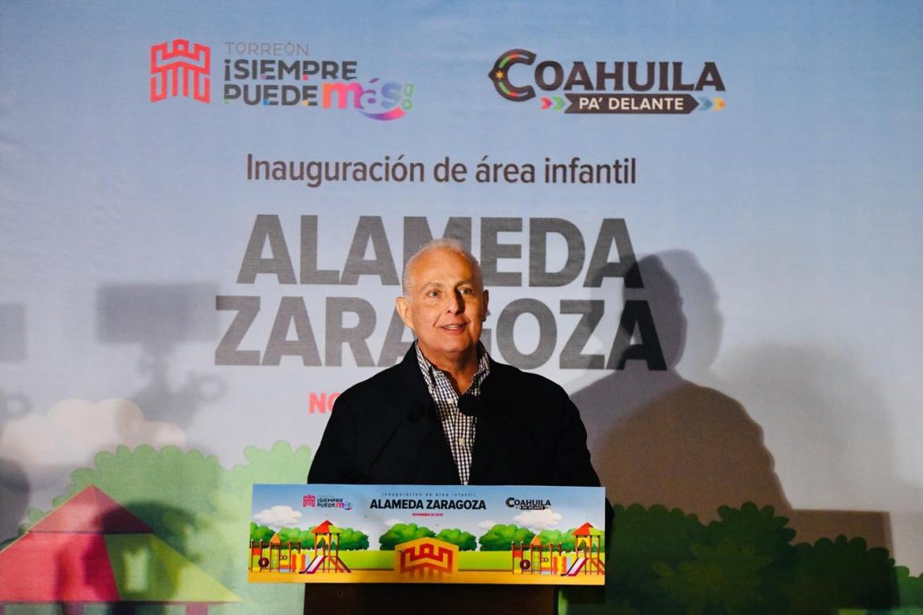 “Hoy tenemos nueva área de juegos infantiles para que la Alameda siga siendo el espacio público favorito de todos los torreonenses”.