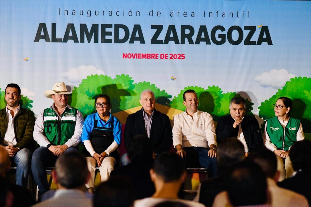 La tarde de este jueves, el alcalde Román Alberto Cepeda González inauguró el área infantil de la Alameda Zaragoza, obra que forma parte de la rehabilitación integral que se ha llevado a cabo en este espacio público con una inversión de más de 10 millones de pesos.