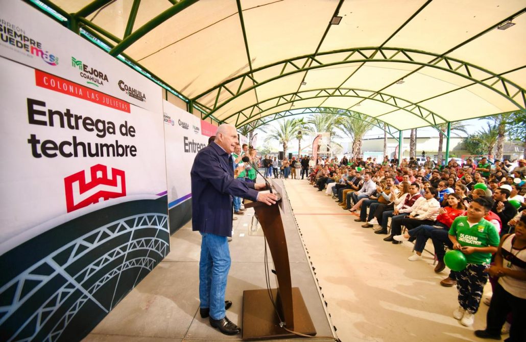 Con una inversión cercana a los 2.5 millones de pesos, este viernes el alcalde Román Alberto Cepeda González entregó una nueva techumbre a los vecinos de la colonia Las Julietas, como parte del programa de rehabilitación de espacios públicos para fomentar el deporte y la convivencia familiar.