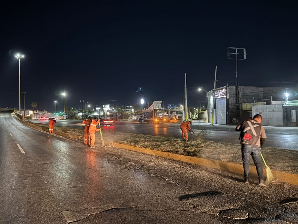 Ante la próxima temporada decembrina y el aumento de visitantes a Torreón, personal de La Ola de la Dirección de Servicios Públicos intensificó las labores de limpieza nocturna en el Periférico Raúl López Sánchez.