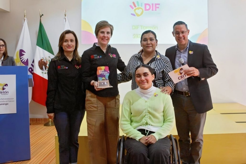 El Centro de Rehabilitación Integral Teletón (CRIT) Durango, entregó a DIF Torreón un galardón en reconocimiento a su destacada participación en el Boteo Teletón 2025, al lograr una recaudación superior a los 93 mil pesos.