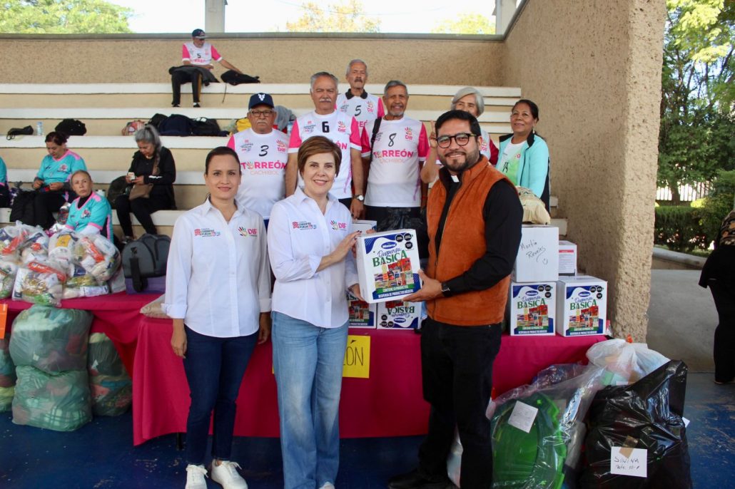 La señora Selina Bremer de Cepeda, presidenta honoraria del Sistema para el Desarrollo Integral de la Familia (DIF) Torreón, dio inicio a la 33 edición del Torneo del Pavo 2025, la competencia de cachibol para adultos mayores más importante de la región.