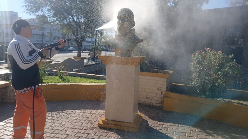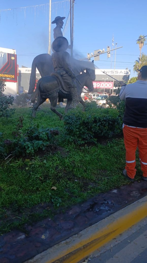 Como parte de las acciones encaminadas a la imagen urbana, la Dirección de Servicios Públicos Municipales de Torreón, a través de La Ola, intensificó las labores de limpieza y mantenimiento en los monumentos históricos de la ciudad.
